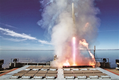 除了通用性,垂直發(fā)射系統(tǒng)還提高了艦載武器的布置效率和艦艇的快速反應(yīng)能力。與傾斜發(fā)射裝置只能布置在甲板上不同,垂直發(fā)射系統(tǒng)大多布置在甲板下方,極大地提高了艦上的空間利用率,降低了艦體的雷達(dá)散射截面積。更重要的是在面對(duì)飽和攻擊時(shí),垂直發(fā)射系統(tǒng)可在極短的時(shí)間內(nèi)發(fā)射多枚導(dǎo)彈,攔截來自不同方向的威脅,這種快速反應(yīng)能力在現(xiàn)代反艦導(dǎo)彈速度不斷提高的背景下尤為重要。