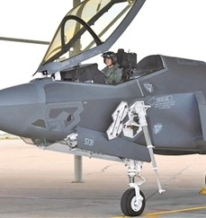 上圖中,F(xiàn)-35戰(zhàn)斗機座艙左側(cè)下方的開口處,伸出一根像天線一樣的支架指向地面,這其實是戰(zhàn)斗機的內(nèi)置折疊式登機梯。飛行員正是借助這一小巧裝置,得以順利進出座艙。