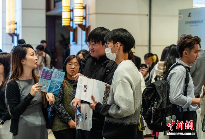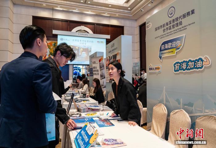 圖為一家內(nèi)地單位的工作人員與求職青年進(jìn)行交流。中新網(wǎng)記者 侯宇 攝