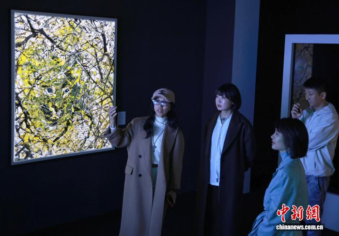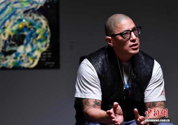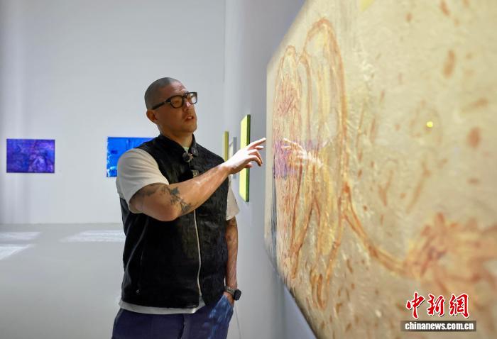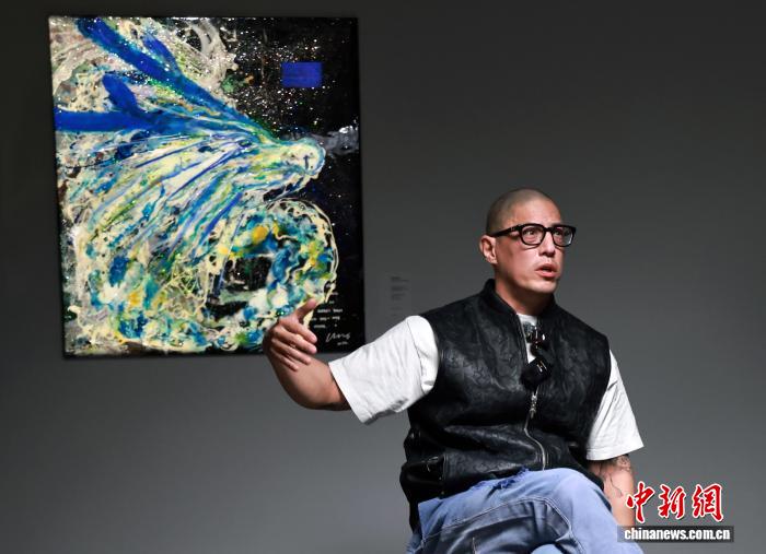 圖為在3月13日預(yù)展中,蔣友柏介紹自己的作品《獅子座的愿望》。中新社記者 王磊 攝
