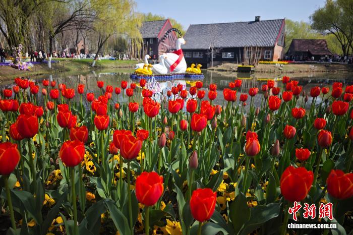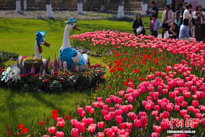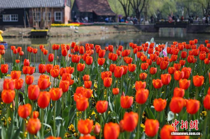 3月14日,江蘇南京,綠博園內(nèi)種植的郁金香迎來盛放期,絢麗繽紛,明艷動人。中新社記者 泱波 攝