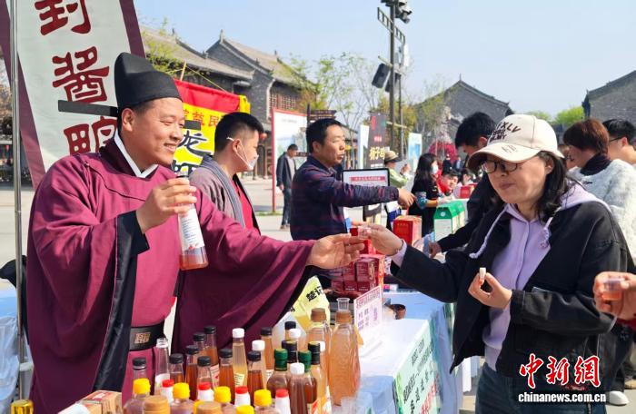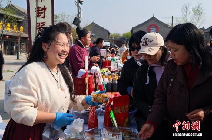 4月1日,河南開(kāi)封,2026開(kāi)封清明文化節(jié)正式啟幕?;顒?dòng)以宋韻為底色,融合非遺展示、民俗體驗(yàn)、特色市集等內(nèi)容。圖為市民體驗(yàn)特色市集活動(dòng)。 李新義 攝