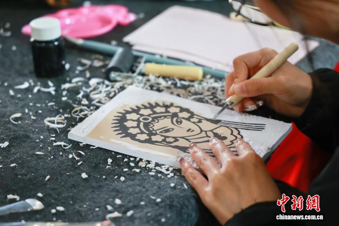 4月1日,河南開(kāi)封,2026開(kāi)封清明文化節(jié)正式啟幕?;顒?dòng)以宋韻為底色,融合非遺展示、民俗體驗(yàn)、特色市集等內(nèi)容。圖為民眾體驗(yàn)朱仙鎮(zhèn)木版年畫(huà)制作。 姚子文 攝
