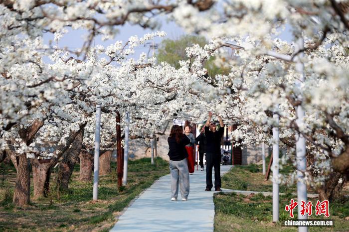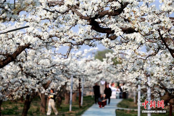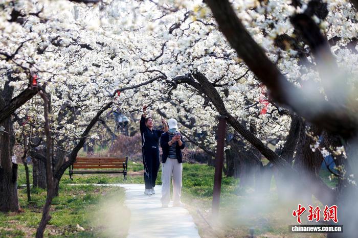 4月2日,山東濱州陽信百年梨園進(jìn)入盛花期,吸引眾多游客踏青賞花。據(jù)悉,百年梨園現(xiàn)存古梨樹群面積約100畝,老梨樹共計(jì)693株,其中,有545株樹齡達(dá)150年,是齊魯大地樹齡最長、面積最大的古梨樹群之一。地處魯北的陽信是中國鴨梨之鄉(xiāng),陽信第37屆梨花會將于4月4日啟幕。中新社記者 梁犇 攝
