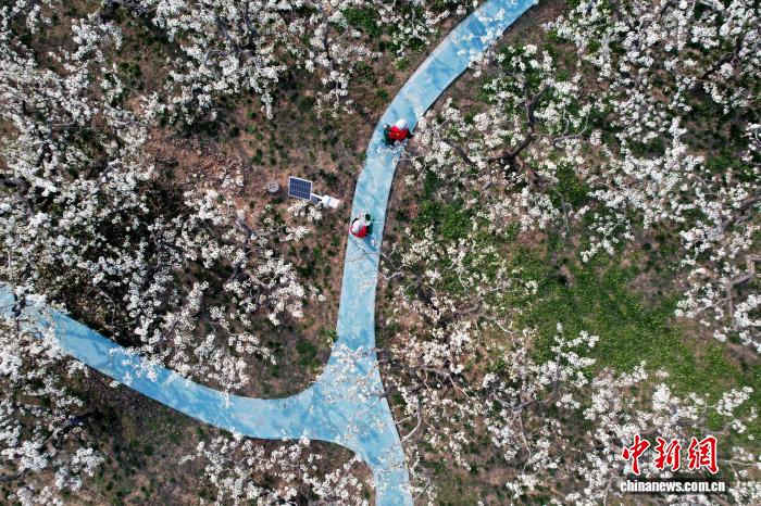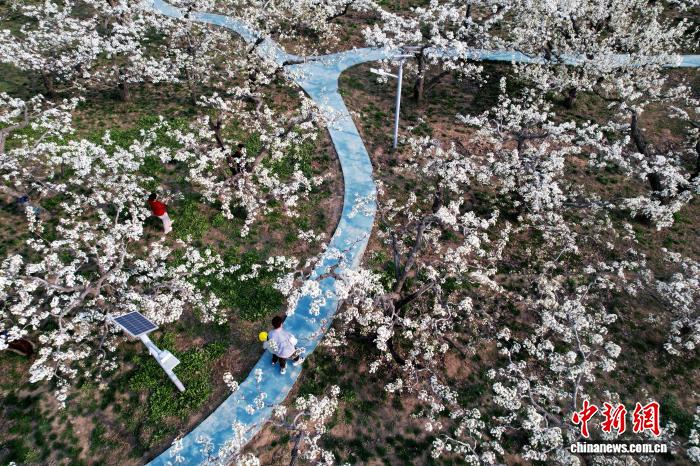 4月2日,山東濱州陽信百年梨園進(jìn)入盛花期,吸引眾多游客踏青賞花。據(jù)悉,百年梨園現(xiàn)存古梨樹群面積約100畝,老梨樹共計(jì)693株,其中,有545株樹齡達(dá)150年,是齊魯大地樹齡最長、面積最大的古梨樹群之一。地處魯北的陽信是中國鴨梨之鄉(xiāng),陽信第37屆梨花會將于4月4日啟幕。(無人機(jī)照片)中新社記者 梁犇 攝