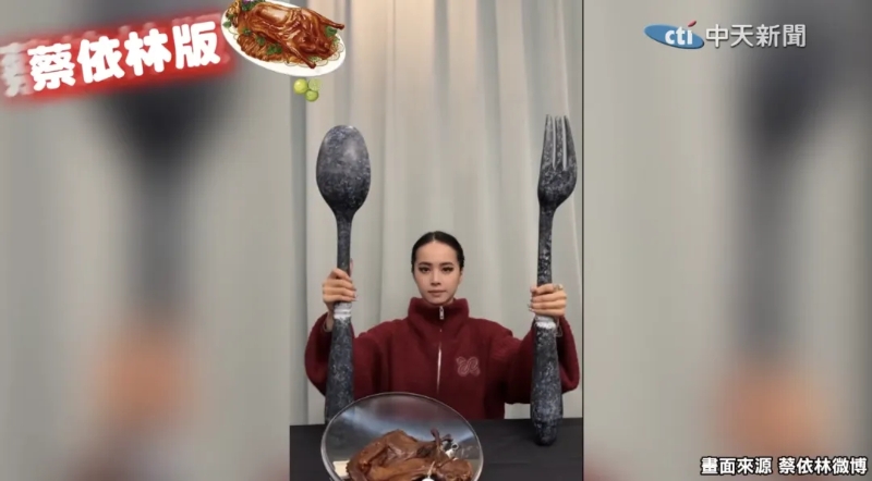 熱梗很快席卷臺灣,臺灣藝人蔡依林也加入二創(chuàng)。她在視頻中推開屋門,詢問那句經(jīng)典臺詞,結(jié)果剛開口就忍不住笑場,隨后自嘲:“我是在長沙演唱會后臺等吃醬板鴨的蔡依林?!弊詈竽弥蟮恫?,擺出開吃的架勢,逗樂無數(shù)網(wǎng)友。