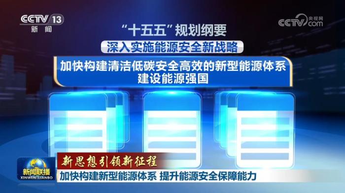 央視網(wǎng)消息(新聞聯(lián)播):習(xí)近平總書記強(qiáng)調(diào),要加快規(guī)劃建設(shè)新型能源體系,確保能源安全?!笆逦濉遍_局之年,一批清潔能源基地、電力輸送通道等重大工程抓緊建設(shè),新型能源體系加快構(gòu)建,中國能源綠色低碳轉(zhuǎn)型步伐提速,能源安全得到有效保障。