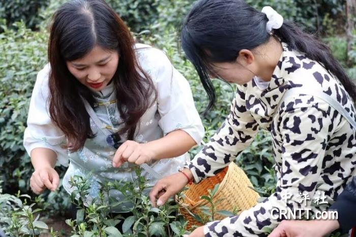 兩岸媒體人紛紛駐足觀摩,臺灣影視人邱慶齡與臺灣中華文化經(jīng)貿(mào)聯(lián)合協(xié)會理事長彭美葵背上茶簍,虛心向正在采茶的女工請教采摘技巧,并親手嘗試采茶。一掐一折間,嫩綠的茶芽便落入掌心??粗约河H手采下的鮮葉,他們臉上綻開了笑容。
